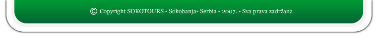 Dobrodošli na internet stranice SOKOTURS agencije. Ceneći Vaše vreme koje ste odvojili da bi posetili naš sajt, potrudili smo se da Vam na praktičan i efektan način pružimo najbitnije informacije o Sokobanjskoj turističkoj ponudi kao i o raznovrsnim uslugama koje pružamo.